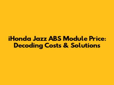 Hey there, car enthusiasts! So, you're here because you're curious about the iHonda Jazz ABS module price, huh? Well, you've come to the right place! Dealing with ABS issues can be a real headache, and understanding the costs involved is crucial. We're going to break down everything you need to know about the iHonda Jazz ABS module price, including what it is, why it's important, and what factors influence the price. We'll also dive into potential solutions and help you navigate this common car problem.