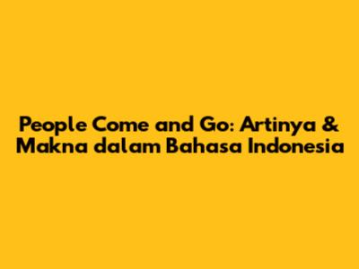 People Come And Go: Artinya & Makna Dalam Bahasa Indonesia